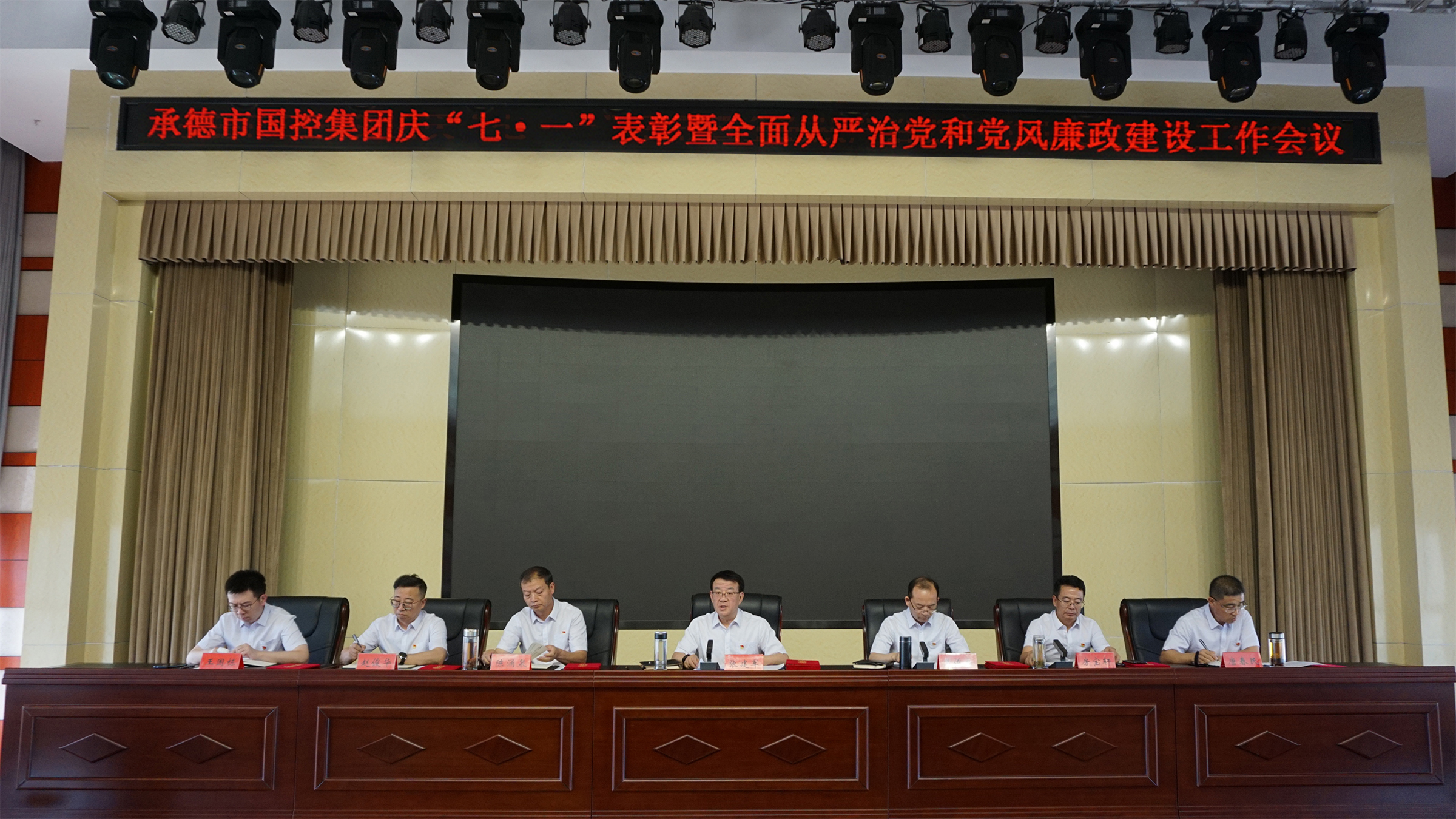 6月30日,國控集團(tuán)組織召開慶“七一”表彰暨全面從嚴(yán)治黨和黨風(fēng)廉政建設(shè)工作會議。集團(tuán)公司黨委書記、董事長張建軍主持會議,領(lǐng)導(dǎo)班子全體成員、集團(tuán)公司本部全體職工、子公司中層以上人員及黨員參加會議。